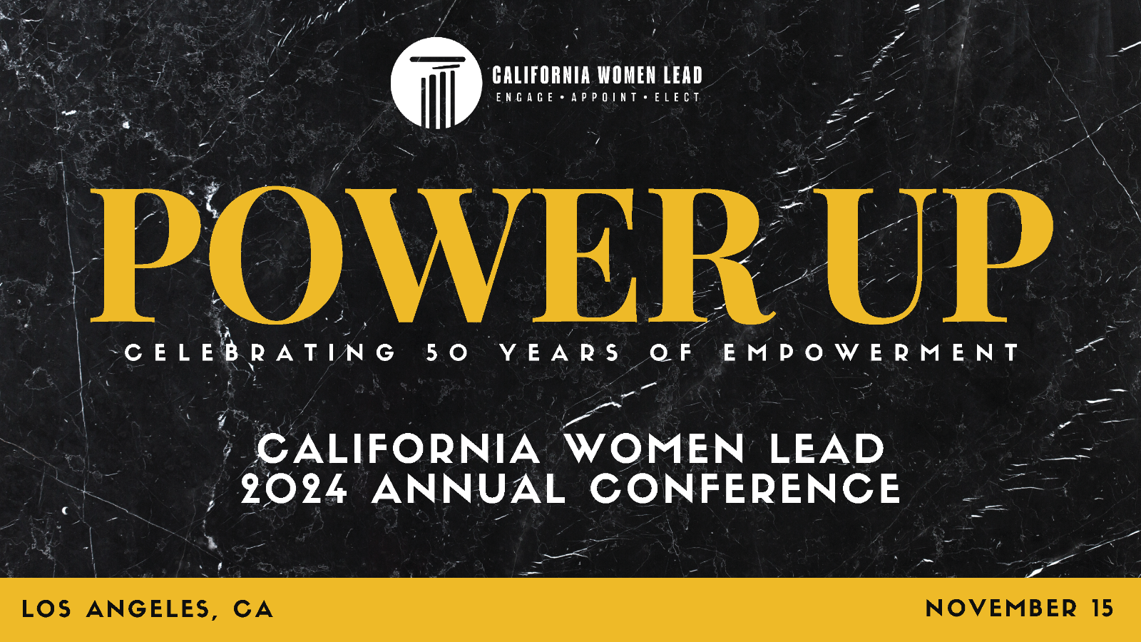 You are invited to California Women Lead’s Annual Conference on Friday, November 15, in Los Angeles at the Luskin Conference Center as we continue to celebrate CaWL’s 50 years of empowering women with the Conference theme, Power Up!